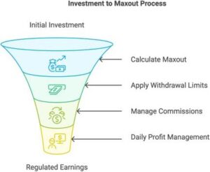 The Maxout rule limits the total amount you can withdraw from profits, commissions, and bonuses. This ensures system sustainability and rewards consistent investment.